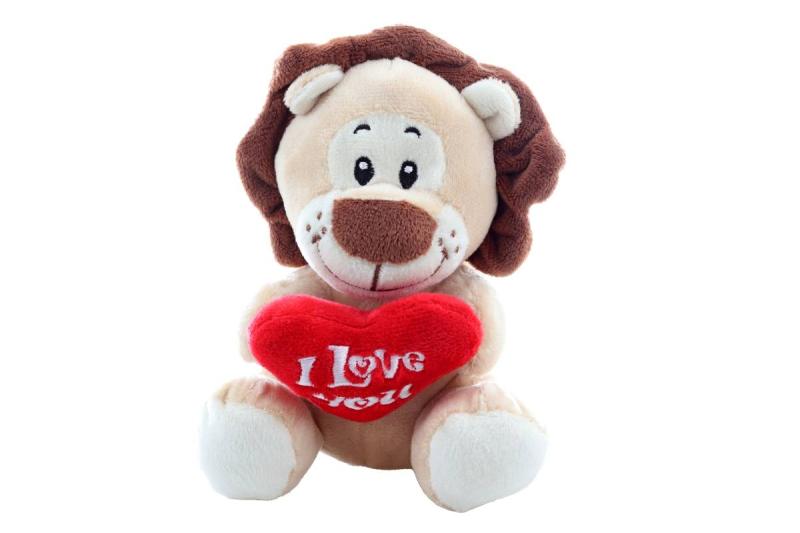 Plyšové divoké zvířátko se srdíčkem I Love You o rozměrech cca 14x13x11 cm. 6 druhů