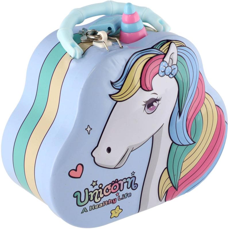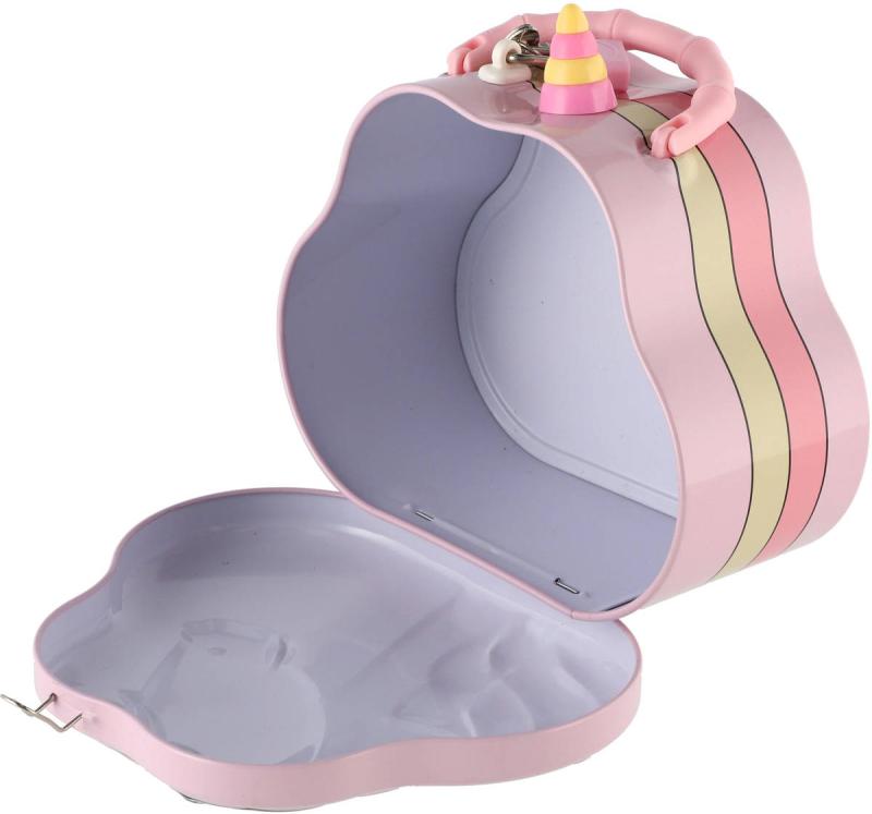 Plechová kasička ve tvaru kabelky s jednorožcem je skvělou pomůckou, jak děti naučit hospodařit se svými penězi, ale i k procvičení počítání! Na vrchní části pokladničky je otvor pro vložení mincí. Pokladna je na zámek, takže jsou ušetřené penízky v bezpečí.