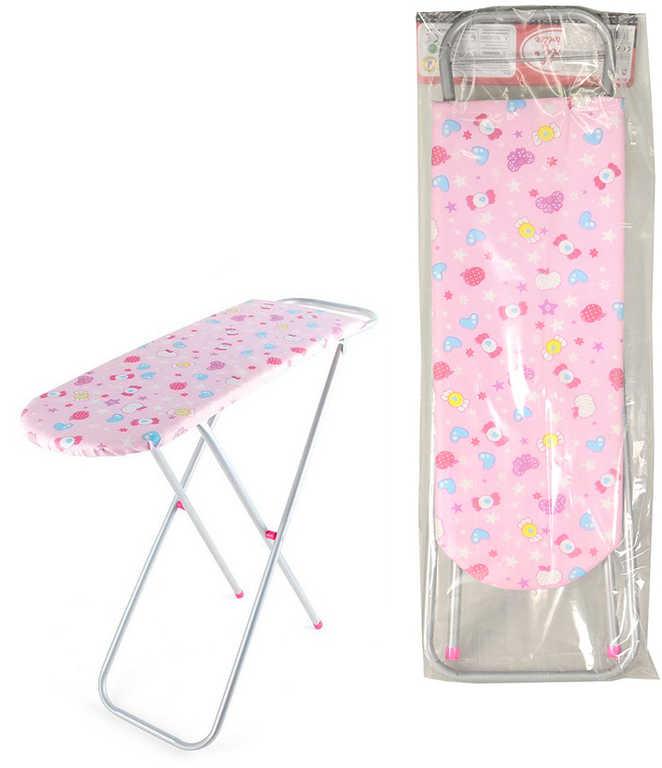Skládací růžové žehlící prkno s kovovou konstrukcí, s potahem s veselým růžovým motivem, pro všechny malé maminky a pomocnice v domácnosti. Vyžehlit panenkám šatičky teď již nebude problém. Baleno v sáčku.