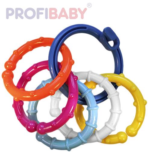 Profibaby Kroužek baby plastový s přívěsky chrastítko v sáčku