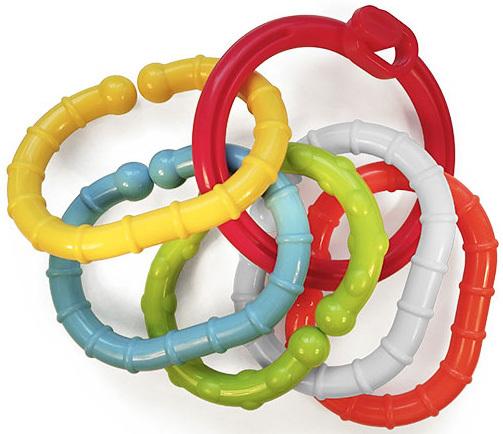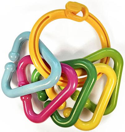 Kroužek plastové chrastítko z plastu, s pěti navlečenými barevnými kolečky, pro nejmenší děti, pro miminko.Hračky pro miminka mají krásný vzhled, jsou lehké a navíc fungují jako aktivní hračky - stimulují dítě vizuálně i prostřednictvím hmatu.