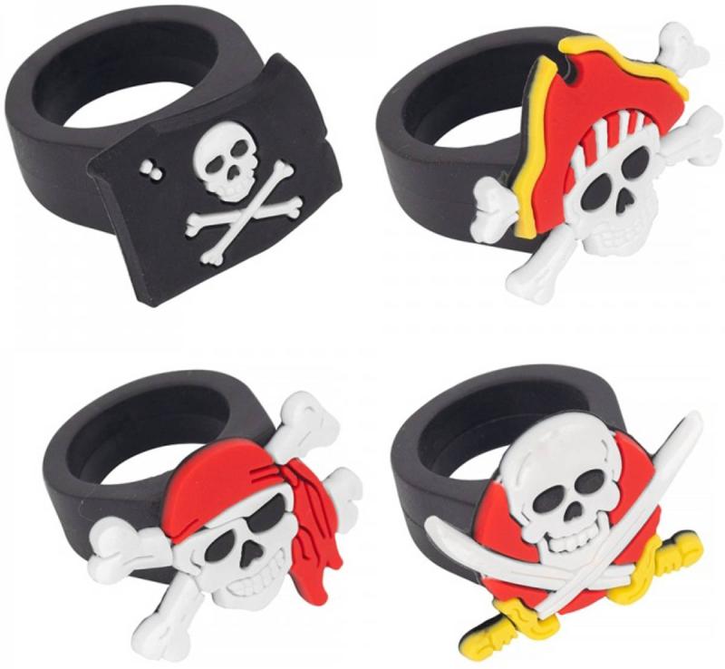 Tyto originální pirátské prstýnky vaše děti nadchnou. Jsou vyrobeny z materiálu vhodného pro dlouhodobé a odolné používání. Jsou skvělou volbou jako dárek pro děti k narozeninám. Perfektní doplněk pro slavnostní oblečení na párty, na karneval a další tematické či maškarní příležitosti.