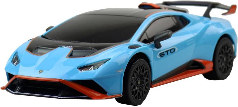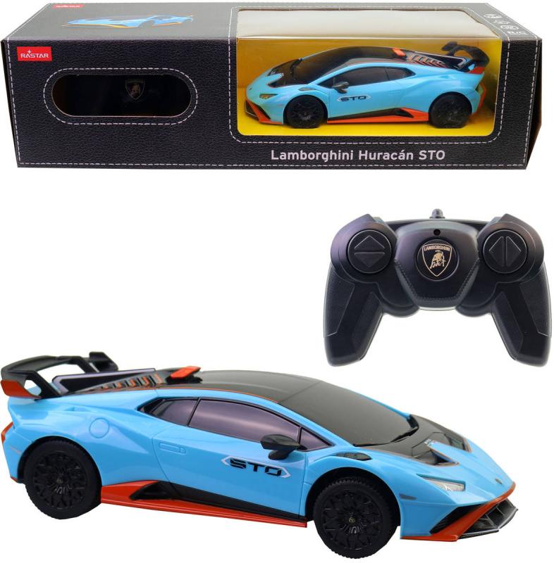 RC 1:24 Lamborghini Huracan STO. Tento RC model Lamborghini Huracan STO je skvělým doplňkem pro malé kluky od 3 let. Poskytuje skvělý zážitek z hraní. Materiál z plastu zajišťuje odolnost a dlouhou životnost. Model je dodáván v krabici typu window box a vyžaduje 5 baterií typu AA. S rozměry 18,9 x 9,3 x 5,2 cm je ideální pro hravé odpoledne plné zábavy.