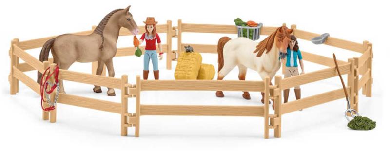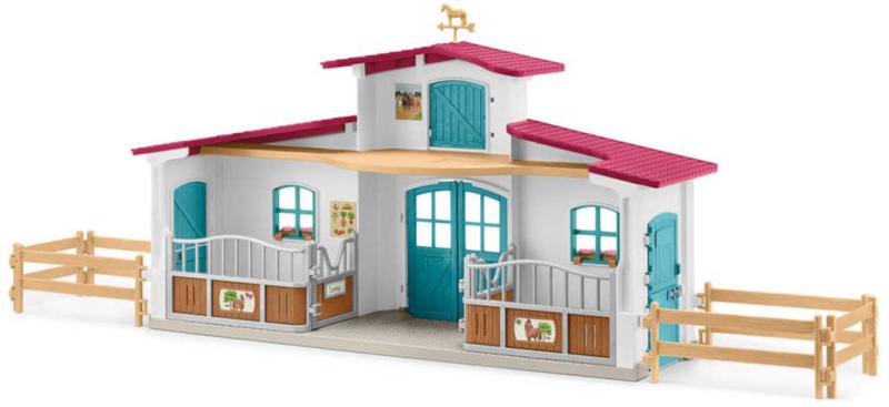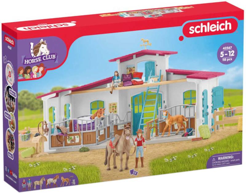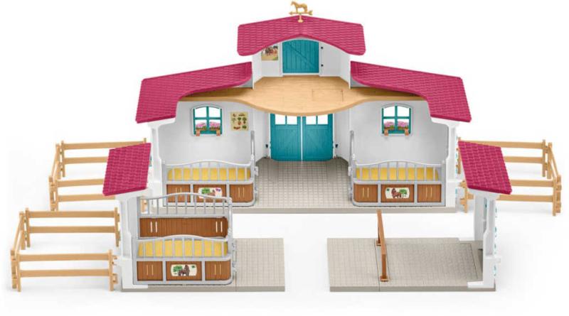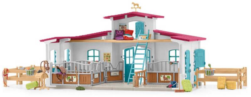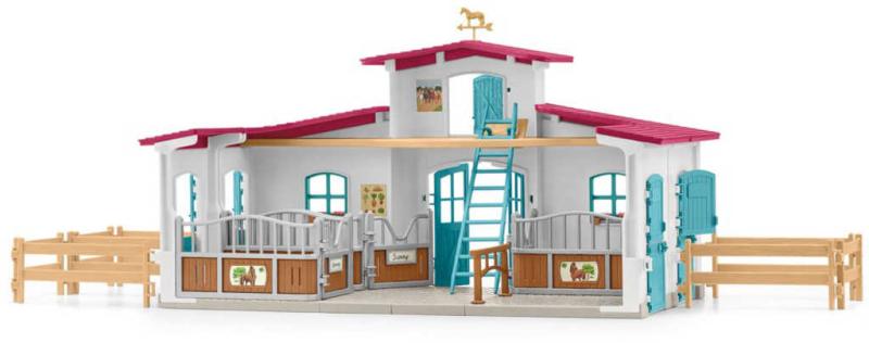 Osedlej koně a můžeš vyrazit. Ale až po dokončení prací ve stáji. Ještě štěstí, že s jezdeckou stájí z kolekce Schleich HORSE CLUB je to taková zábava a nabízí vše, co ty i jezdec potřebujete. S
