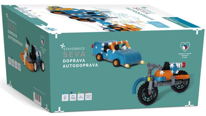 SEVA DOPRAVA - Autodoprava obsahuje 743 dílů. Pokud chcete ze SEVY stavět auta všech typů a velikostí, tak toto balení je určeno pro Vás. Stavebnice SEVA DOPRAVA - Autodoprava Vám přinese pořádnou dávku všech možných vozidel, auťáků, bagrů, motorek a trucků. Součástí balení je návod, který je nadupaný velkým množstvím předloh.