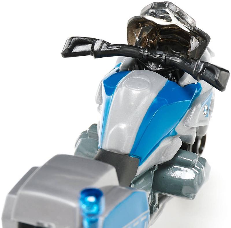 SIKU 1551 - BMW R1250 GS LCI Policejní motocykl, motorka "Polizei", německá policie, kvalitní kovový sběratelský model (kov + plast).BMW R1250 GS LCI je již léta nejprodávanějším motocyklem v Německu a drží si status skutečné ikony. Jako zásahové vozidlo je výkonný stroj oděn do charakteristické modro-stříbrné policie. Samozřejmostí je také standardní výbava: Blikající modré světlo, aby byli ostatní motoristé a kolemjdoucí včas varováni během pronásledování. Rám a nádrž jsou vyrobeny z kovu, řídítka a stojan jsou pohyblivé a kola jsou vybavena pneumatikami z pravé pryže. Tyto atributy umožňují této klasické motorce nabídnout realistickou herní zábavu pro mladé i staré milovníky koňských sil.