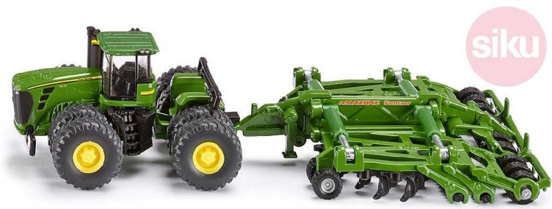 SIKU 1856 Kovový model zajímavého kloubového traktoru John Deere 9630 s dvojitými koly a víceúčelovými bránami Amazone. Model traktoru je propracován do jemných detailů včetně potisku. Zatáčení je realizováno pomocí kloubu uprostřed traktoru. Připojitelné brány Amazone lze zvednout do přepravní polohy nebo nechat sklopené v pracovní pozici. Všechna kola a válce bran jsou otočné. Model je vyroben z kovu a doplněn plastovými díly. Pneumatiky jsou gumové.Skutečný ráj všech užitkových aut je zde - připraven jen a jen pro vaše chlapce. Hračky pro kluky od SIKU v podobě velkých strojů, aut a modelů autíček! SIKU nabízí široký sortiment potřebných vozidel, traktory, kombajny, rypadla a další velká auta na farmu a na pole. Kromě farmářských aut jsou zde i pracovní stroje jako například vysokozdvižný vozík nejen pro skladníky. Malé modely osobních aut či dodávek zde najdete také. Nabídka je opravdu široká.