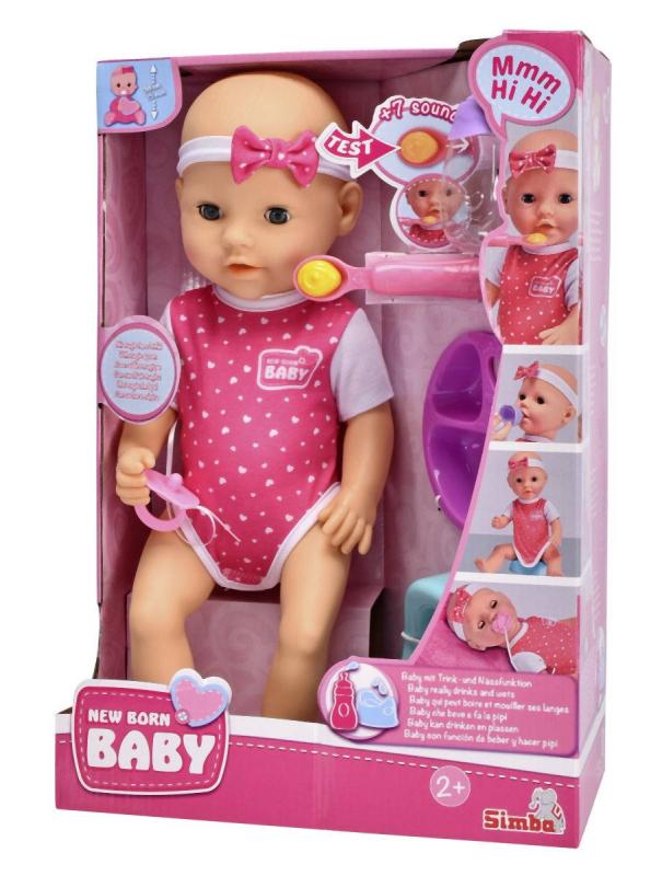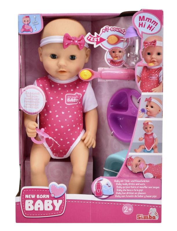 Panenka New Born Baby Hungry pije a čůrá a vydává zvuky.
