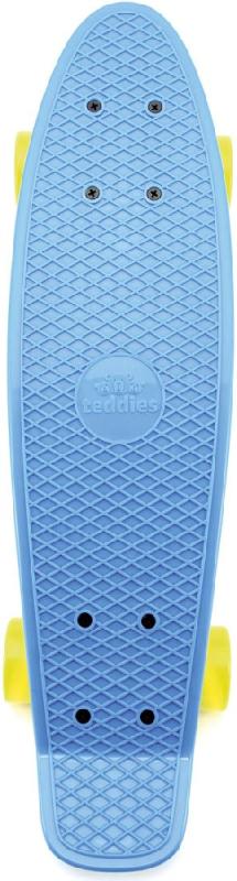 Tento skateboard - prkno pro děti je určeno pro začínající skateboardisty na klasickou jízdu a základní nenáročné triky. Skateboard je vyrobený z kvalitních materiálů, které zajišťují výborné jízdní vlastnosti – kovové osy dřžící kolečka. Vaše děti si užijí spoustu zábavy. Modrá deska se žlutými kolečky zaujme především holky. Rozměry dětské hračky (d): 60cm