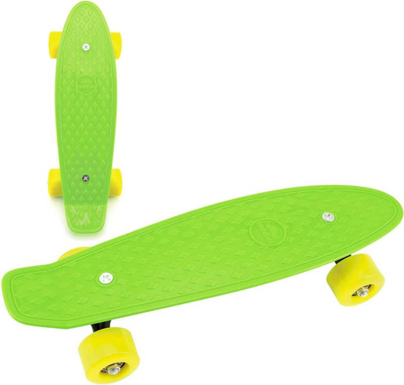 Tento skateboard - prkno pro děti, je určeno pro začínající skateboardisty na klasickou jízdu a na nenáročné triky. Skateboard je vyrobený z kvalitních materiálů, které zajišťují výborné jízdní vlastnosti. Vaše děti si užijí spoustu zábavy. Zelená deska se žlutými kolečky se hodí pro holky. Rozměry dětské hračky (d): 43cm