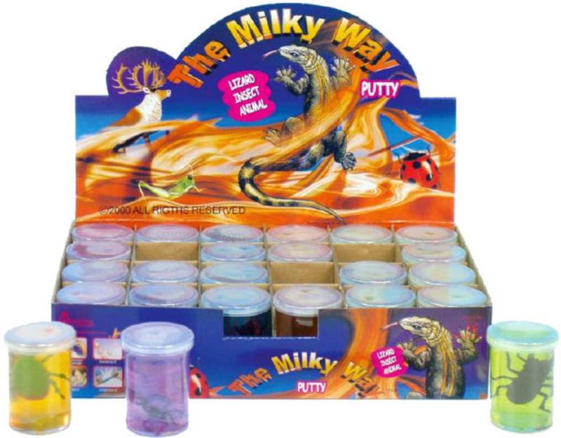 Zábavná slizovitá hmota s hmyzem pro děti The Milky Way Putty, v různých variantách provedení, ukrývající v sobě nejrůznější druhy hmyzu (mravenec, moucha, vážka, pavouk, brouk), v plastovém kelímku.Sliz, který tě zaručeně pobaví. Je nechutně slizký a umí se neuvěřitelně natahovat. hračka, se kterou zažiješ spoustu legrace.