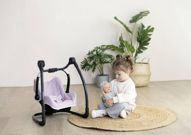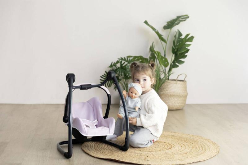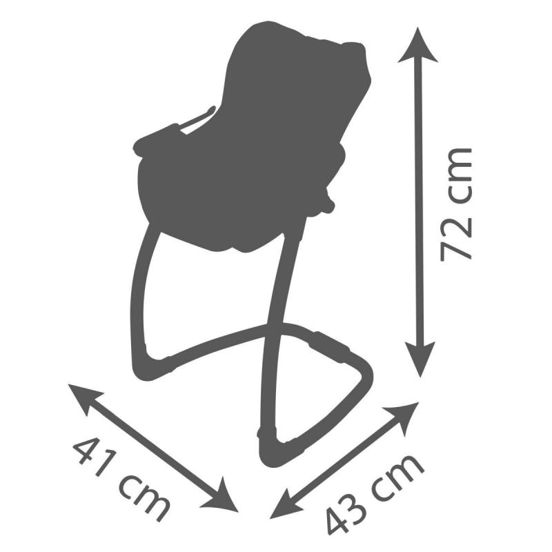 Při zavěšení sedačky na konstrukci je rázem houpačka pro panenku do velikosti 42 cm. Otočením konstrukce získáte vysokou jídelní židličku s pultíkem.