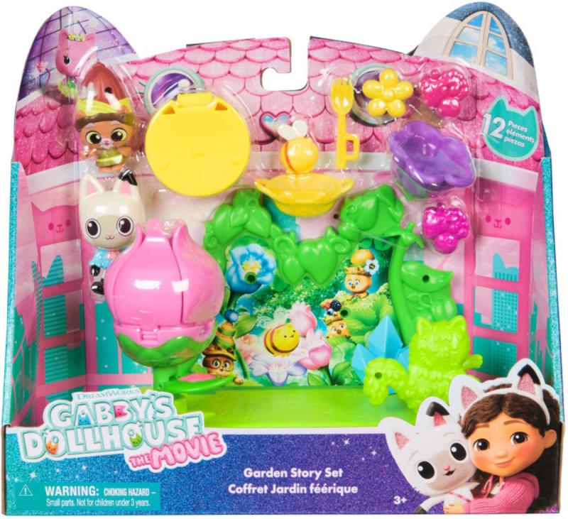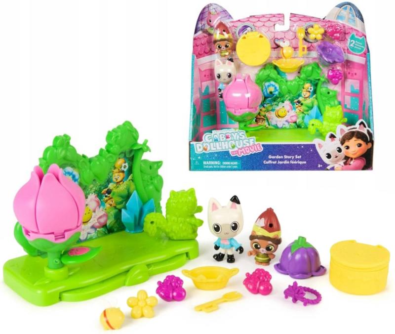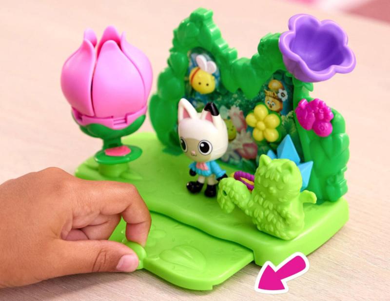 Přineste si domů kouzelný svět filmu Gábinin kouzelný domek s herní sadou Zahradní příběh, kde na vás čekají okouzlující dobrodružství! Tato kouzelná 12dílná herní sada obsahuje velký květ, který se otevře po stisknutí kouzelného tlačítka tlapkového pozdravu. Děti si zamilují výsuvnou plošinu sloužící jako piknikové místo, sundavací květinový klobouček pro Pandu Ťapku a doplňky jako včelokočku a lesní plody, které nabádají k úžasnému objevování s těmito skvělými vzdělávacími hračkami. Rozbalte doručený balíček z domečku stejně jako Gábina a objevte překvapení – poté naskenujte QR kód a odemkněte bonus v aplikaci Gábinin kouzelný domek. Tato sada je skvělým způsobem, jak podnítit představivost a vybídnout děti k mňau-úžasným objevům s těmito roztomilými kočičími hračkami ze světa Gábiny.