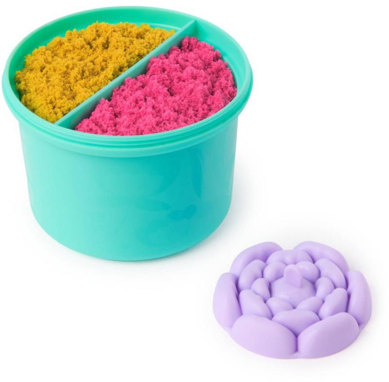 Přiveď květiny k životu s kinetickým pískem Rozvíjej se poupátko! Tato sada s kinetickým pískem podnítí v dětech představivost a radost z mačkání a odhalování fascinujících výtvorů z písku na pohyblivé herní ploše! Sada Rozvíjej se poupátko obsahuje přes 227g neónově růžového a žlutého kinetického písku, květináč a formu, plus další formy na dně květináče a je nezbytnou výbavou pro jarní zábavu! Na měkkou pěnu naneste písek a stlačte dolů, abyste vylisovali svou květinu – když se forma zvedne, květina magicky rozkvete! Smíchejte písek a vytvořte korálově oranžovou, pak s formami květináče vytvarujte růže, včelky a listy a znovu rozkveťte!
