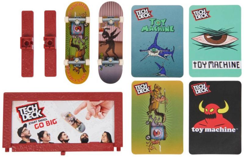 Vyrazte do ulic se zbrusu novou sadou dvou skateboardů Versus Series od Tech Deck. Jezděte po skutečných pouličních překážkách – celý svět je váš skatepark. Uvnitř každé sady Versus Series najdete dva plně sestavené fingerboardy, připravené do ulic, abyste mohli rovnou vyrazit za svou freestylovou zábavou, a balíček sběratelských karet s výzvami pro souboje s dalšími skejťáky! Sada Versus od Tech Deck vám umožní začít v malém a projet se na oficiálním mini skateboardu s autentickou grafikou od skutečných skateboardových společností jako Toy Machine, April a Thank you! Svou sbírku můžete kousek po kousku dál rozšiřovat a vytvářet trasy plné překážek! Udělejte ollie, sjeďte po zábradlí a nakonec vyšvihněte parádní otočku! Karty s výzvou obsahují různé fingerboardové triky a umožní vám vyzvat své přátele na souboj. Vytáhněte si kartu a ten z vás, který ve svém tahu zvládne předvést trik, vyhrává! Sada Versus Series od Tech Deck má vše, co potřebujete k tréninku a soubojům s dalšími figerboardisty. Prohánějte se po okolí a sjíždějte zábradlí s novými fingerboardy pro děti řady X-Connect. Sestavte si sadu ramp Competition Wall nebo Bowl Builder 2.0 (každá se prodává zvlášť) a rozbalte to na svých prknech Tech Deck. K dispozici je spousta prken, figurek a hracích sad, které můžete sbírat! Užijte si jízdu, otočky a skoky na překážky s fingerboardy Tech Deck od skutečných skejterských společností!