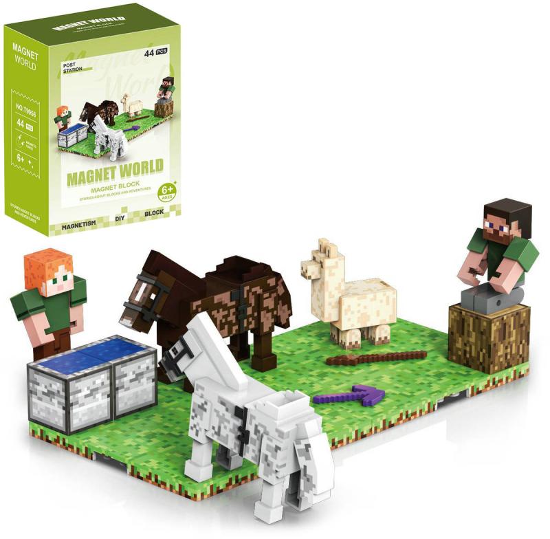 Zvláštností této stavebnice je spojování dílků pomocí silných neodymových magnetů. Herní platforma umožňuje její rozšiřování pomocí dalších podobných sad. Čím více sad, kostek a figurek, tím větší prostor pro hru a kreativitu! Realizujte jakékoli nápady, stavějte libovolné postavy, budovy, zvířata či rostliny - cokoli vás napadne! Díly magnetické stavebnice "Minecraft" jsou vyrobeny z bezpečného ABS plastu, potisk se neodírá a nesmývá vodou.