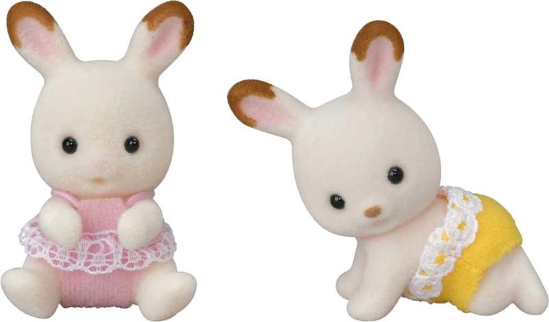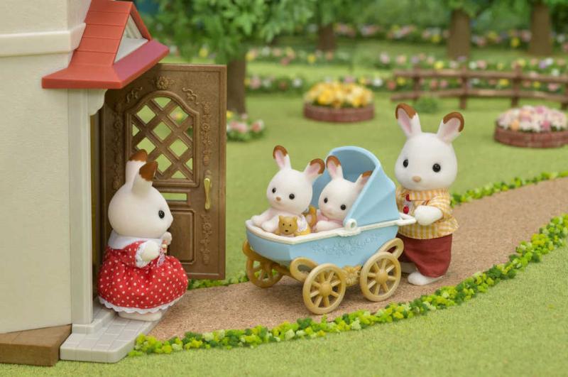 Sada čokoládových zajíčků dvojčata je roztomilá sada skládající se z dvojčat čokoládových králíků, kočárku a dvou hraček pro snadnou hru. Kola kočárku se při tlačení pohybují a otáčejí. Do kočárku se vejde jedno dvojče.Sylvanian Families přišli do Evropy z Japonska již v roce 1985 a okouzlili malé děti i dospělé. Od té doby putují světem a rozdávají radost jako kreslené postavičky filmu, jako představitelé videoher nebo jako