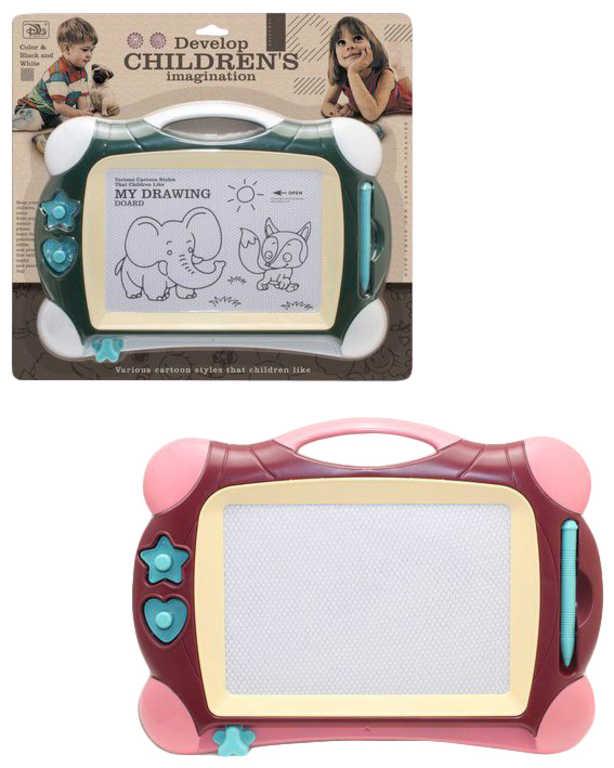 Magická kreslicí tabulka ve dvou barevných variantách. Součástí setu jsou i 2 razítka.