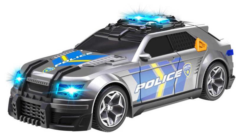 Krásný plastový automobil Policie ve stříbrném provedení, se žluto-modrou grafikou, se světelnými a zvukovými efekty, pro všechny malé strážce zákona. Hračka na baterie, se světlem a zvukem. Baleno v open boxu.