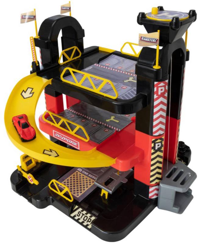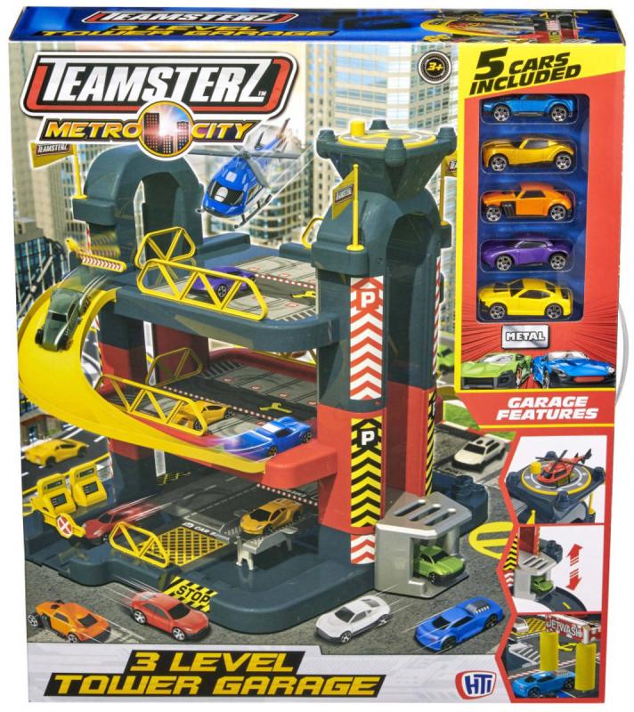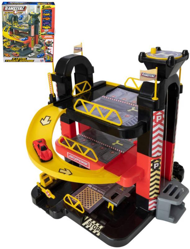 Teamsterz garážová sada má 2 patra. Obsahuje přistávací plochu pro vrtulníky, čerpací stanici, myčku aut, zábrany, parkovací stání, funkční automobilový výtah a 5 autíček z kovu a plastu. Baleno v krabici.Pokud máte doma malého automobilového nadšence, určitě pro něj vyberte garáž Alltoys s mnoha parádními funkcemi. Parádní 2patrová garáž přinese do hry s autíčky vítané zpestření. Děti určitě ocení další pěkné doplňky, mezi které patří auta, heliport, závory a výtah. Garáž na autíčka Alltoys nabízí také výtah, který vyveze autíčka do nejvyššího podloží. Horní paluba je vybavena přistávací plochou pro vrtulníky. V balení se kromě garáže nalézá také 5 autíček. Při této aktivitě si děti rozvíjí své manuální dovednosti, fantazii a kreativitu.