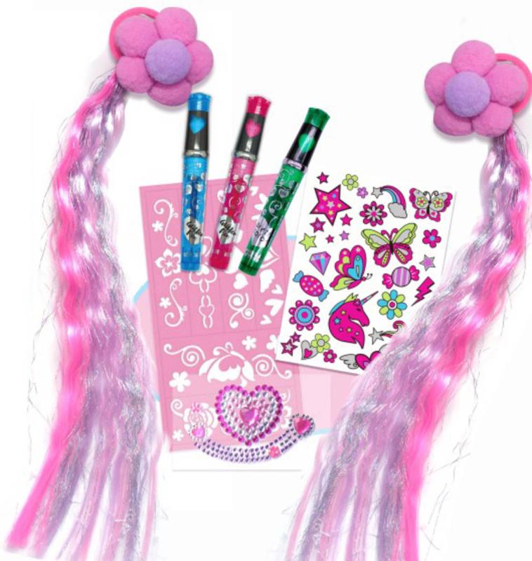 Tetovací studio holčičí kreativní set 3 tetovací pera se šablonami a copánky