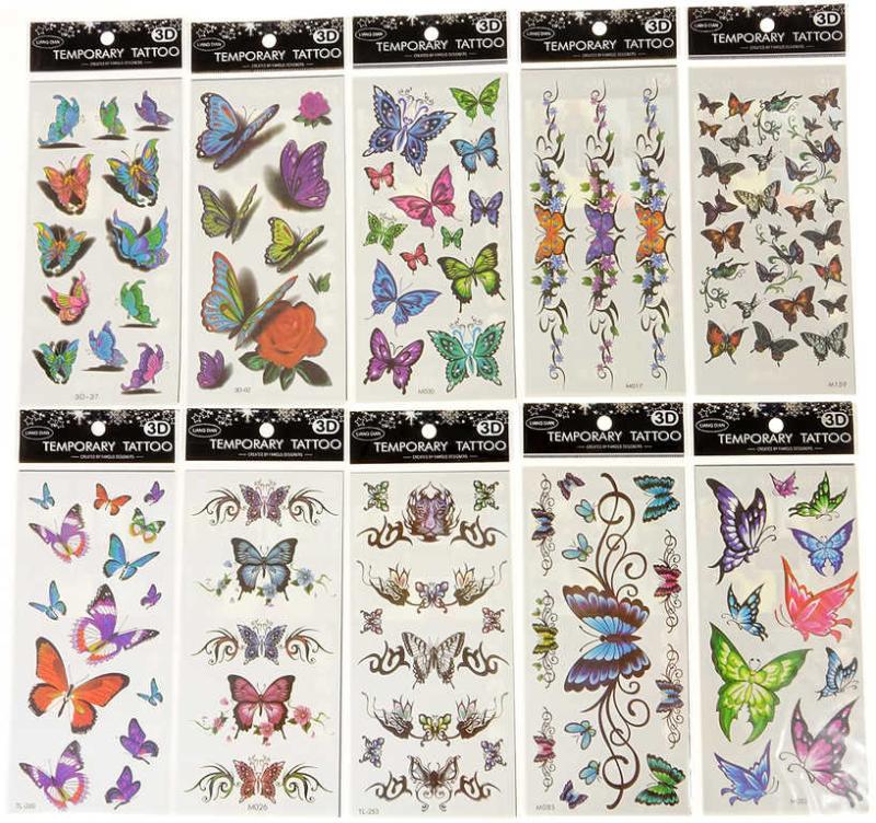 Sada tetování pro holky. Motýlci. Balení obsahuje 1 arch s několika tetovačkami. Hračka v několika variantách provedení. Baleno v sáčku.