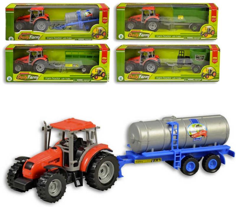Traktor farmářský 33cm set s přívěsem 4 druhy v krabičce plast
