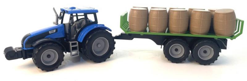 Traktor farmářský na setrvačník s přívěsem s balíky sena 3 barvy plast