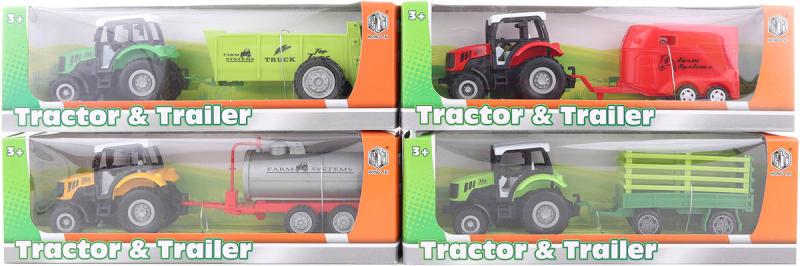 Traktor kovový s přívěsem 23cm 4 druhy v krabici