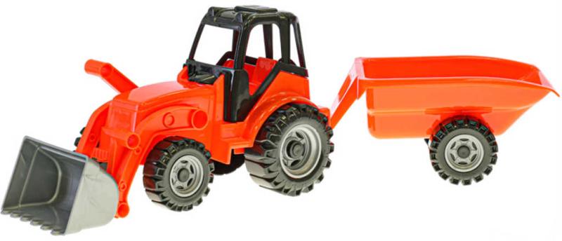 Pěkný plastový traktor s přívěsem, ve třech veselých barevných variantách, pro všechny malé farmáře a zemědělce. Baleno v síťce.Traktor, to je zemědělský stroj, který zastane na poli, či v lese, hodně práce.
