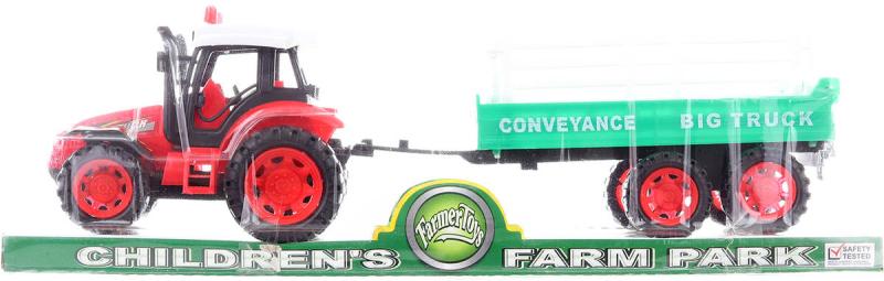 Plastový farmářský traktor s pohonem na setrvačník, s přívěsem, herní set o velikosti cca 32cm, pro všechny malé zemědělce. 2 barevné varianty.