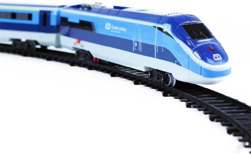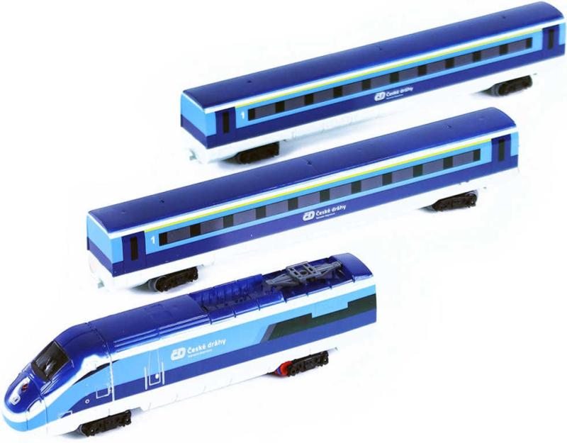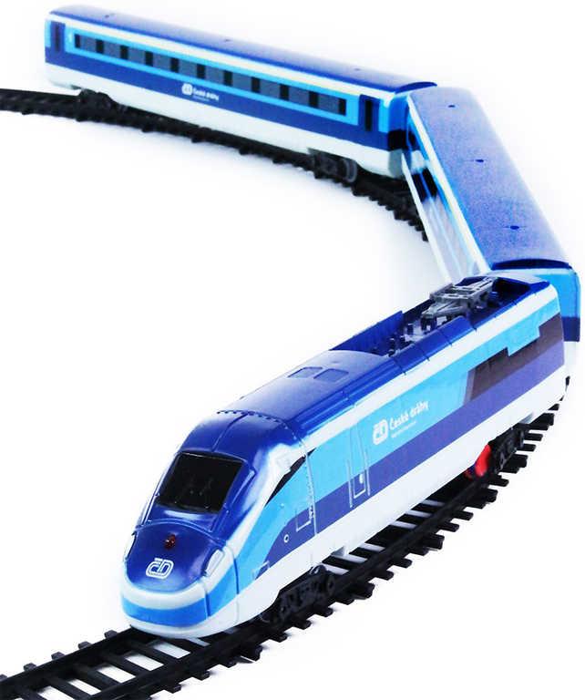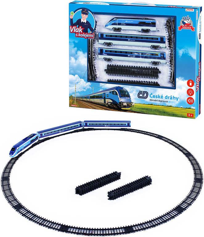 Vlak České dráhy set lokomotiva + 2 vagóny s kolejemi na baterie Světlo Zvuk