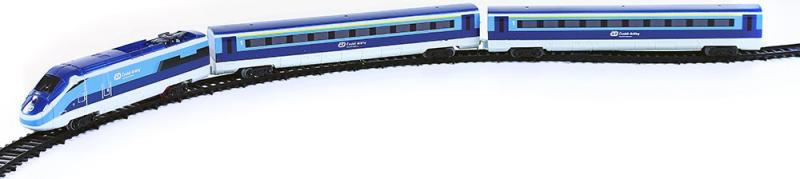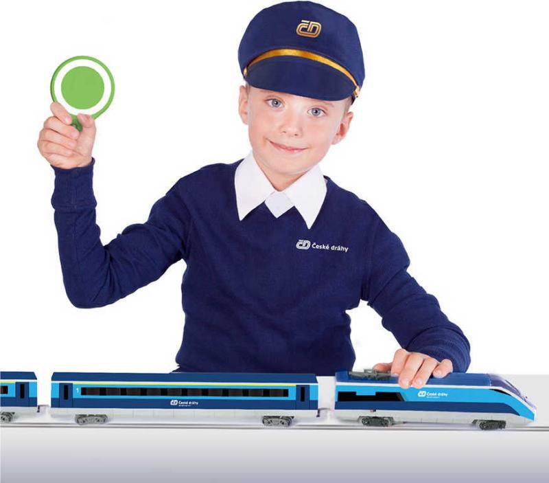 Parádní model plastové vlakové soupravy v originálním designu Českých drah, v sadě s rovnými i zatočenými kolejemi, umožňující sestavit různé varianty trati. Sada obsahuje lokomotivu a dva osobní vagony. Lokomotiva jezdí, vydává zvuk a svítí. Hračka na baterie se světlem a zvukem. Tuto novinku lze kombinovat s vlakem RegioJet. Za lokomotivu nedoporučujeme zapojovat více než 2 vagonky, může dojít ke zpomalení rychlosti vláčku. Baleno v krabici.Rozměry balení (š v h): 55 x 43 x 5,5cm