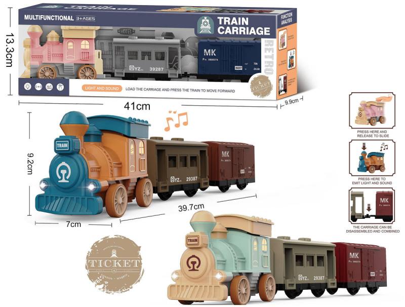 Dodání produktu Vlak mašinka + 2 vagony na baterie Světlo Zvuk 3 barvy plast