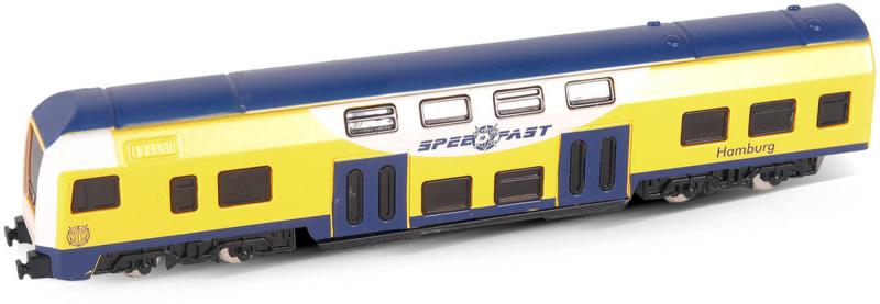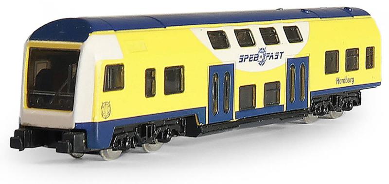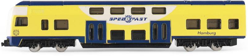 Regionální německý žluto-modrý vlak, kovový model 1:48, volný chod, vlaková souprava z kovu a plastu - 1 díl, velikost 16cm.Moderní mini regionální vlak nesmí chybět v pokojíčku žádnému fandovi vláčků! Tento úžasný kovový vláček o velikosti 16cm je ideální jako dárek nebo jako sběratelský kousek! Vláček jezdí na volný chod a je v měřítku 1:48.