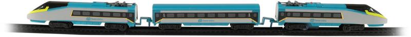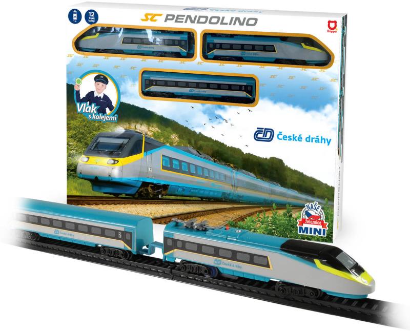 Vlaková plastová souprava na baterie Mini Pendolino (České dráhy) z kolekce "Naše železnice". Součástí 2 lokomotivy, vagon a kolejnice.Milujete cestování vlakem? Tak sestavte koleje, postavte na ně lokomotivu, připojte vagóny a vzhůru za dobrodružstvím! Originální vlak Pendolino obsahuje přední a zadní lokomotivu a 1 vagón, 8 zahnutých a 4 rovné koleje. Lze vytvořit kolejiště až do velikosti 96 x 58 cm. Rozteč kolejí je 1,4 cm. Vlak Pendolino MINI lze kombinovat s vlakem RegioJet MINI a Slovenské dráhy MINI.