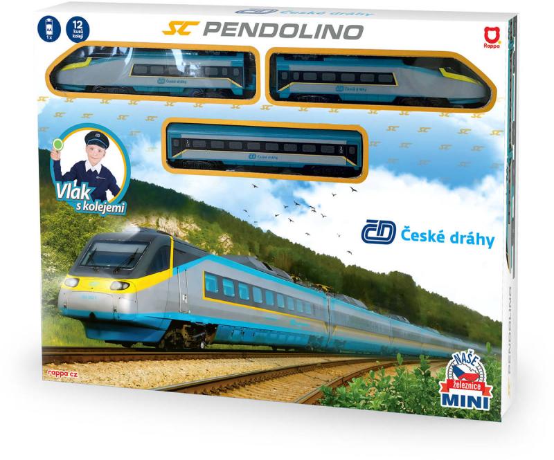 Vlak s kolejemi Mini Pendolino Naše železnice lokomotiva + 2 vagony na baterie