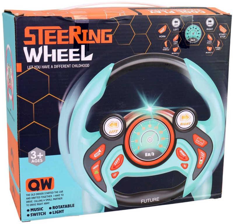 Parádní hračka pro všechny malé automobilové závodníky a fandy do aut. Plastový funkční model volantu v realistickém designu, na baterie. Melodie a světelné efekty. Reálné zvuky (policejní siréna, zatroubení). Volantem lze otáčet. Hračka se světlem a zvukem. Baleno v krabici.