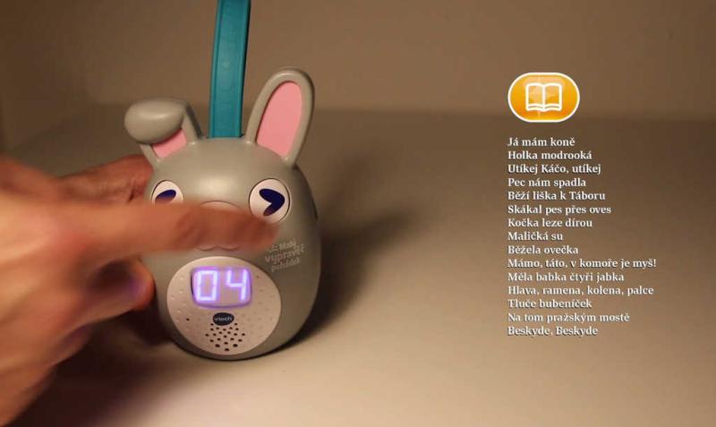 Otočením ocásku králíčka, vyberte kategorii. Po výběru kategorie se stisknutím tlačítka "další" můžete v dané kategorii pohybovat a vybrat požadovaný příběh nebo skladbu. Zvolená nahrávka se spustí