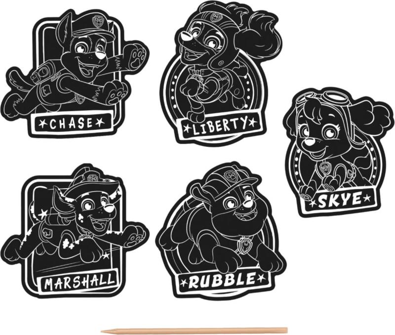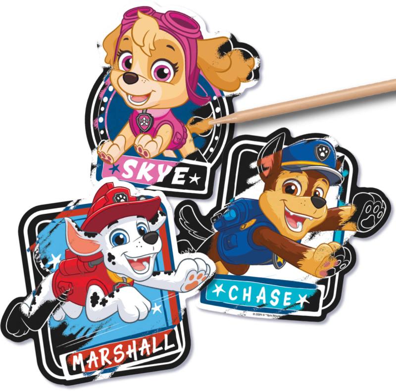 Vyškrabovací obrázky - samolepky Tlapková patrola (Paw Patrol). Součástí 5 samolepek a pero k vyškrabání.