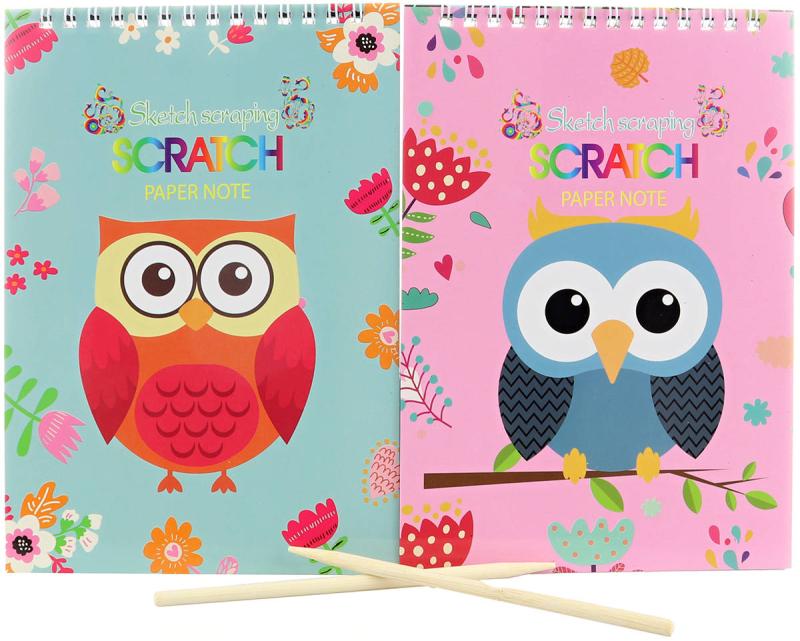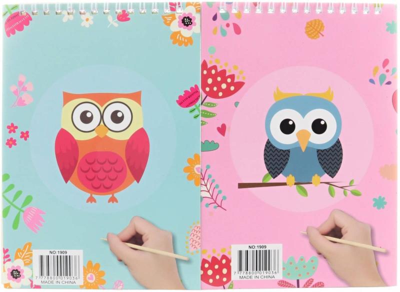 Dodání produktu Vyškrabovací obrázky Sovička sešit 8 listů s nástrojem 2 druhy