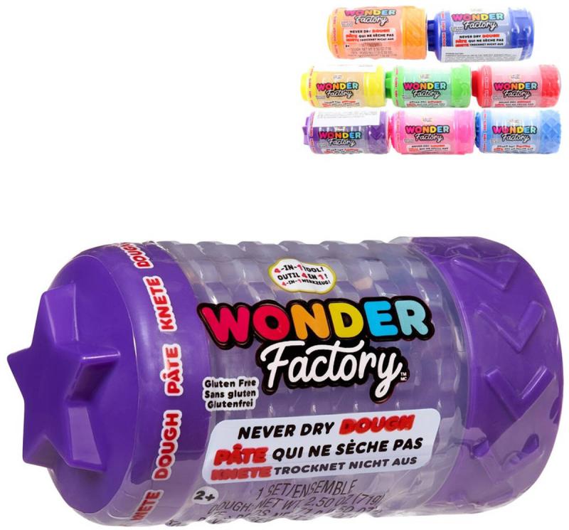 Válej, razítkuj a spojuj! Objev barevný svět kreativní zábavy! Modelovací hmota Never Dry Dough je ideálním doplňkem větších sad Wonder Factory (prodávají se samostatně), ale lze si s ní hrát i samostatně. Inovativní složení Wonder Dough zajišťuje, že hmota nikdy nevysychá, a poskytuje tak dlouhé hodiny nápadité, smyslové zábavy. Plastelína navíc krásně voní! Speciální tubička s výstupky se hodí na vytváření vzorů v písku a horní víčko kelímku slouží zároveň jako razítko.