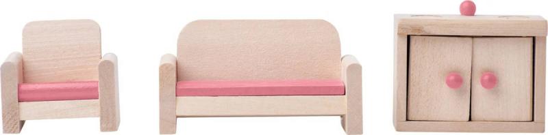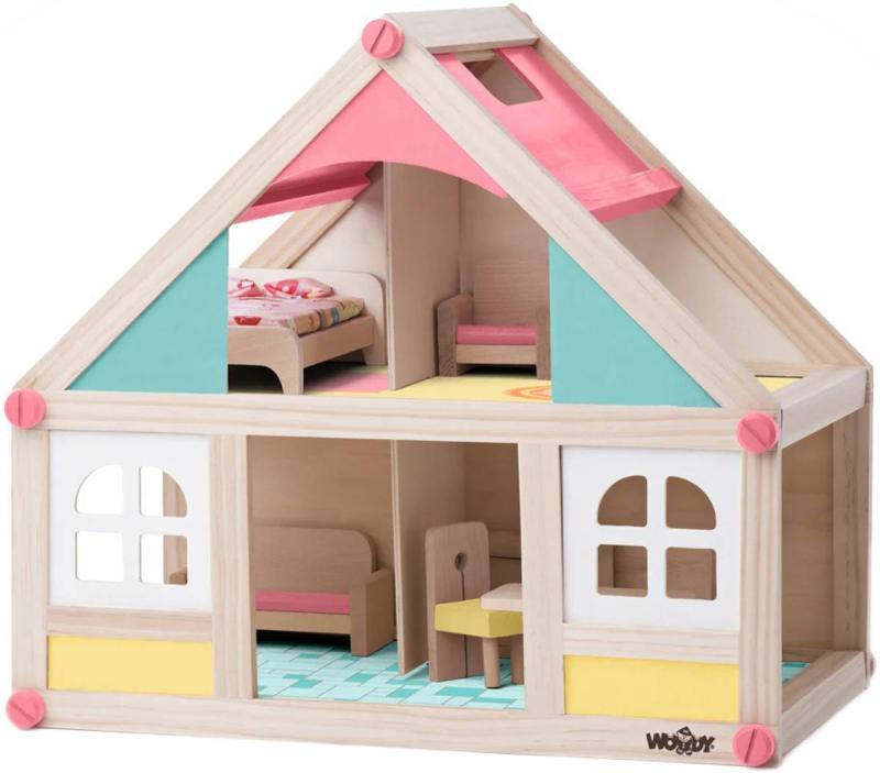 Woody DŘEVO Domeček malý se 2 panenkami a doplňky (dřevěná hračka)