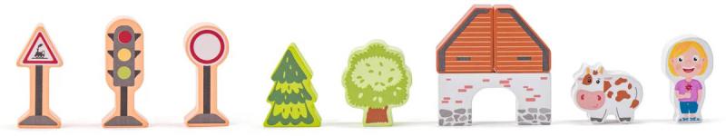 Obsah balení: kufřík s herní plochou, auta, vlak, domy, dopravní značky a další doplňky