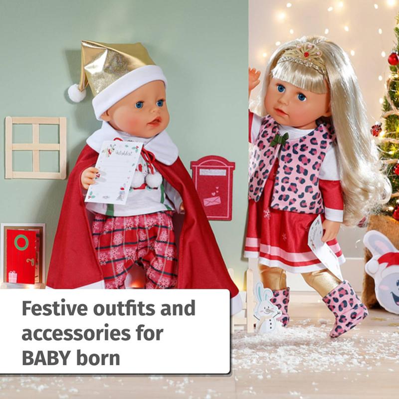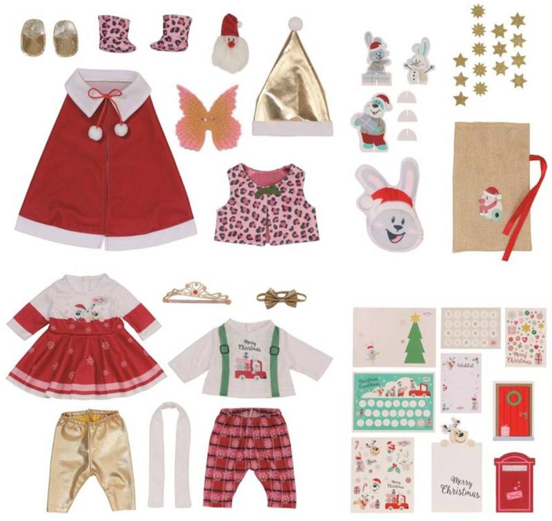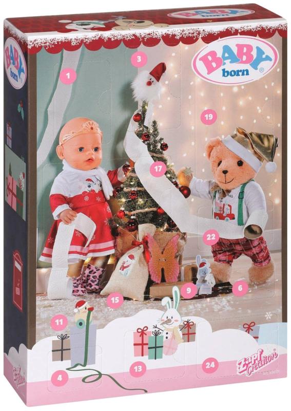 Očekávání je ta největší radost! BABY born už se také moc těší na Vánoce. Předvánoční čas zpříjemní BABY born Adventní kalendář. Za každým ze 24 okének se ukrývá skvělé překvapení: buď malé dárkové předměty, doplňky nebo části některého ze dvou kompletních slavnostních outfitů, pro BABY born Emmu, Carlu, Conrada a medvídka Teddyho.