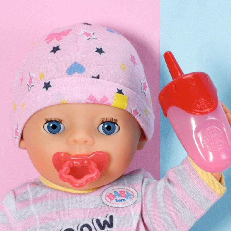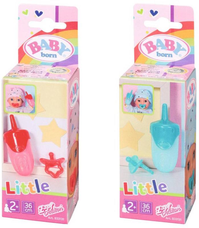BABY born Little Lahvička a dudlík pro panenku - miminko ve velikosti 36cm ve dvou různých barevných variantách.Miminka nejsou nikdy od své lahvičky a dudlíku daleko. A každý, kdo si hodně hraje, musí také hodně pít. Růžová a tyrkysová lahvička jsou skvělým způsobem, jak uhasit žízeň. A když je potřeba ty nejmenší uklidnit a pomoci jim usnout, tak pro tyto případy souprava obsahuje také ladící dudlík.