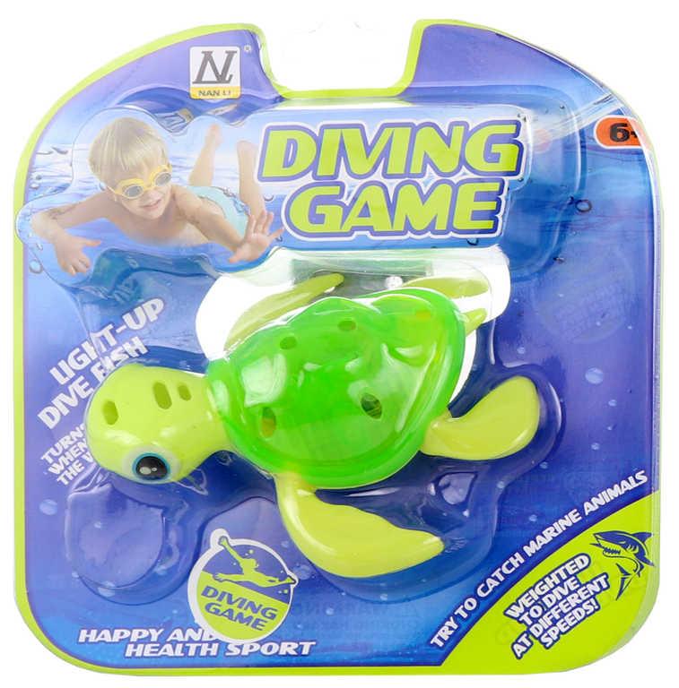 Veselá vodní želvička na potápění do vody. Po vložení do vody svítí a lze ji najít a vylovit. Vhodné pro zpestření plaveckého a potápěčského výcviku nebo využití v domácím bazénu (pod dozorem dospělého). Hračka ve třech barevných variantách, na baterie, se světlem. Baleno na kartě.Tyto vodní hračky udělají velkou radost! Vždyť bez těchto hraček a doplňků na horké letní dny by se neobešla žádná pořádná dovolená. Stanou se ideálním společníkem na lenošení na letní dovolené u vody - u