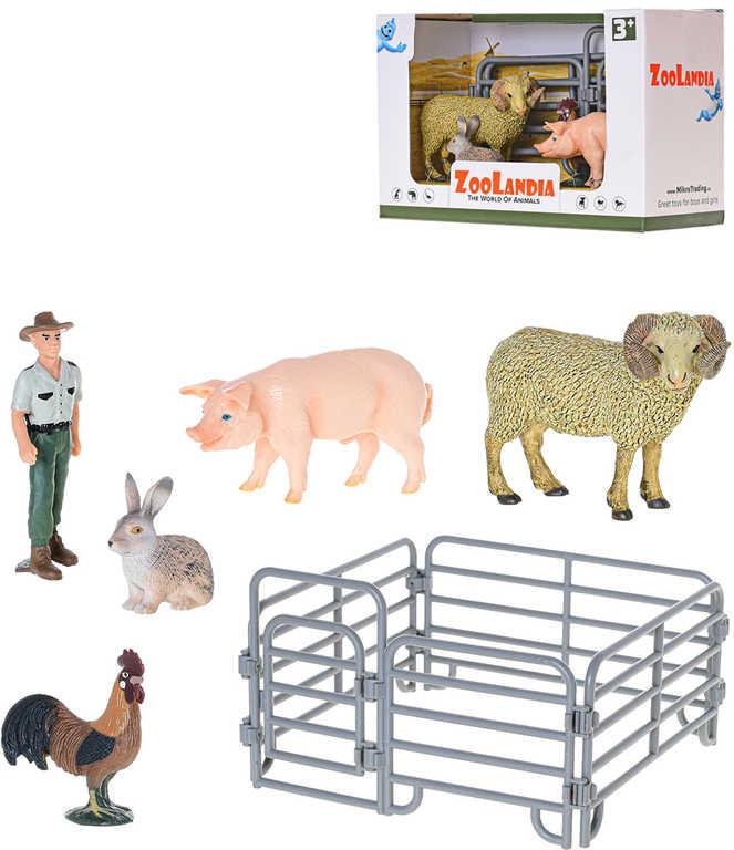 Zoolandia farma herní set zvířátka 4ks s farmářem a ohradou plast
