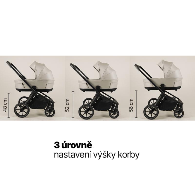 Díky třístupňovému nastavení výšky korby (48–56 cm) si každý rodič můžezvolit ideální pozici dle své výšky a pohodlí. K tomu se přidávají nožičky na