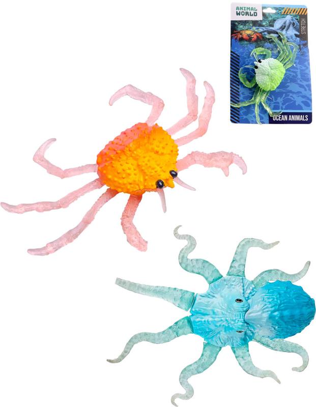 Zvířátko vodní mořské natahovací 2 druhy 2 barvy plast/silikon